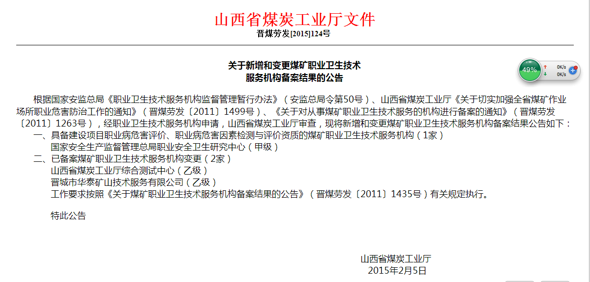 山西省煤炭工業(yè)廳備案